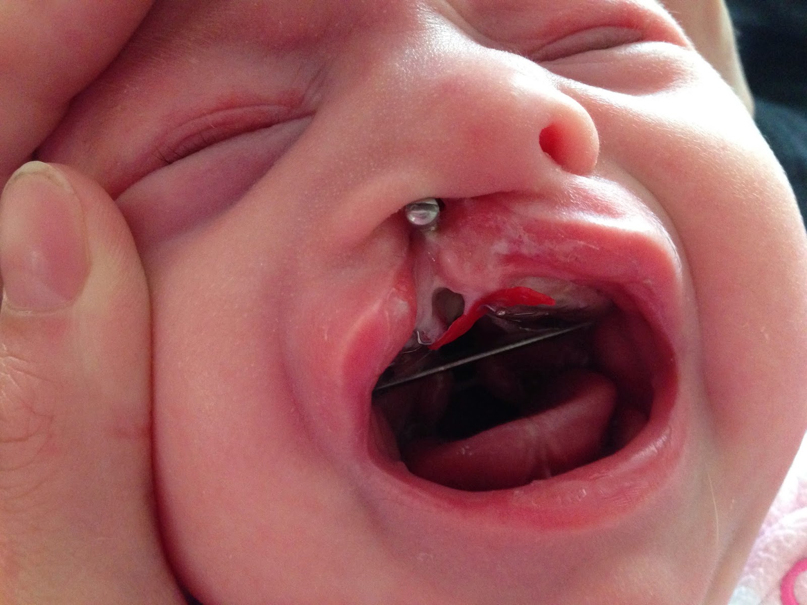 Our surgical team uses the latham device to close the gumline gap before lip repair. The device consists of 4 pins that get pushed into the upper gums to hold it in place therefore needing Emelia to be put to sleep for cooperation purposes. We had to be in Boston at 6am for a 7:30 surgery. Driving to Boston at 3:30 am (and yes, we got there an hour early for surgery so we arrived at 5am) was ridiculously easy with no traffic. We just played and hung out with Emelia for a bit until she got a bit cranky because she was hungry. The most wonderful lady was with her son and we were chit chatting which must have put Emelia to sleep. This woman had many kids, and a grandkid! But was there for her youngest son (about 1yr) for his lip repair. This poor little boy and mother had a horrible night later on. I spent much of my stay walking with her or just admiring her. I wish I could talk to her again but there was a culture gap that kept me from asking for contact information. Anyway, She introduced me to her room mate that evening who was in the surgery right after us by our dr. We chit chatted and saw each other at a few other visits and then we became room mates at our lip repairs by chance. Its funny how things work out... Off topic again! So this was our first "surgery". While there was not supposed to be pain (yeah right) and there was no blood involved, there was anesthesia. As long as we were told she woke up fine, we didnt care what happened.